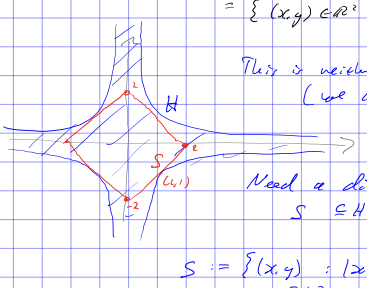 ๐ = { ( ๐ 1 , โฆ , ๐ ๐ 1 , ๐ฅ 1 , ๐ฆ 1 , โฆ , ๐ฅ ๐ 2 , ๐ฆ ๐ 2 : ๐ 1 โ ๐ = 1 | ๐ ๐ | + 2 ๐ 2 โ ๐ = 1 โ ๐ฅ 2 ๐ + ๐ฆ 2 ๐ โค ๐ } which looks like